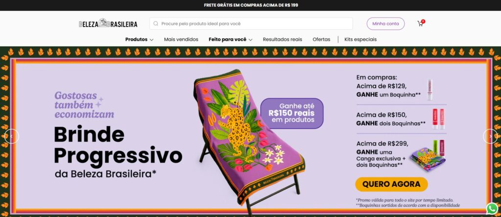 Com meu cupom de desconto Beleza Brasileira, você garante 10% OFF em todos os produtos da loja online, incluindo itens em promoção. Para aproveitar, basta acessar o site, escolher seus favoritos e inserir o código no campo de cupom antes de finalizar a compra.