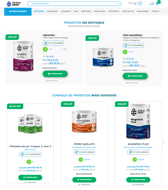 - O cupom de desconto Ocean Drop pode ser usado em todo o catálogo, incluindo suplementos, vitaminas e lançamentos;