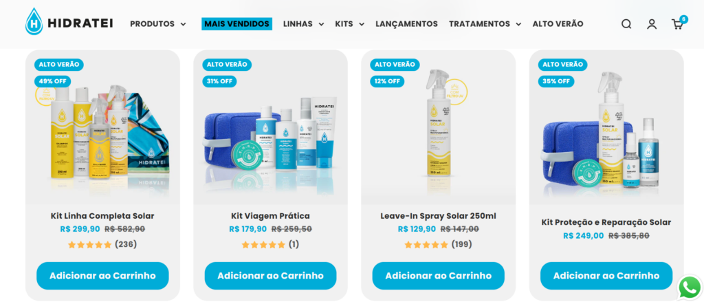 Outro grande diferencial da marca é a experiência de compra e uso: o site é intuitivo, os produtos são bem explicados, os kits facilitam a escolha do tratamento ideal e a entrega é eficiente em todo o Brasil. Além disso, a Hidratei trabalha com tamanhos tradicionais e versões travel size, ideais para testar ou levar na mala.