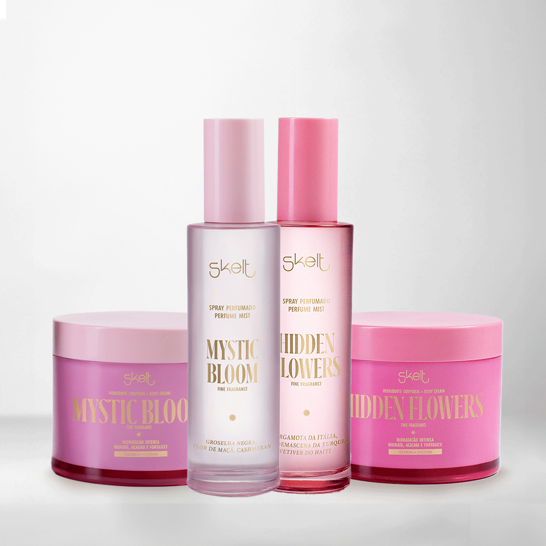 Composta por perfume mist e body cream nas versões Hidden Flowers e Mystic Bloom, a linha Secret Garden Skelt propõe uma nova forma de viver o romantismo: mais ousado, confiante e extraordinário. Cada fragrância floral é como um portal — um segredo revelado em cada pétala, em cada nota envolvente que traduz sua essência com atitude.